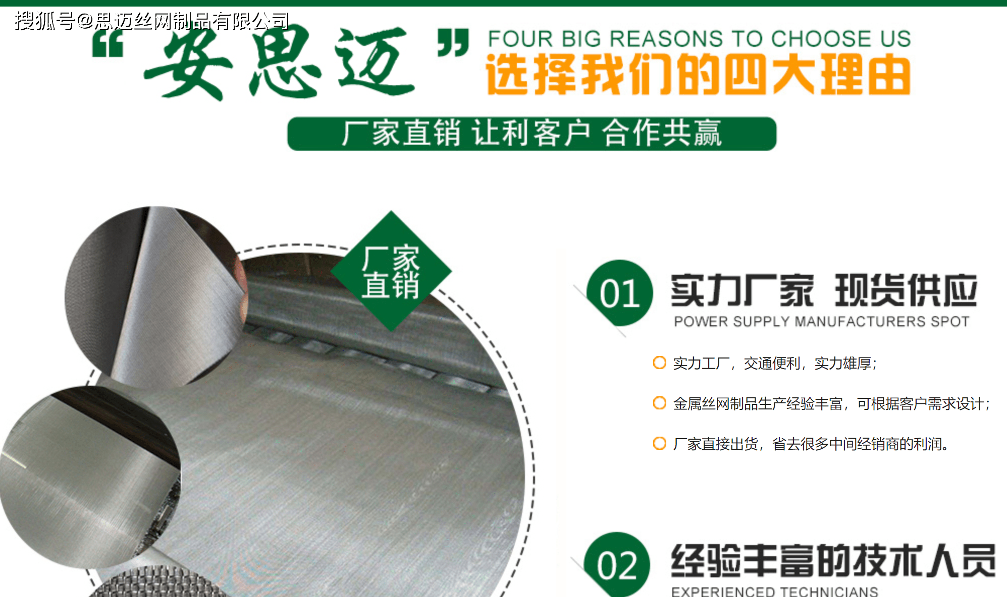 安思邁高端環保絲網產品倡導者-專注于耐高溫耐腐蝕系列絲網 ,安思邁品牌絲網是一家專門生產耐高溫金屬網系列以及耐腐蝕金屬網系列產品的廠家,安思邁始終堅持產品第一,質量第一。主要產品有鐵鉻鋁網、不銹鋼網、鎳鉻絲網、蒙乃爾絲網、英科耐爾絲網,鎳網,銅網,鈦絲鈦板網、哈氏合金絲網等稀有特殊類金屬網產品生產經驗,擁有專業的生產設備,技術力量雄厚,對生產實行規范化管理,對產品實行科學化管理,特殊規格可按樣品視圖紙制造。我們將不斷開發新產品、增加技術含量、擴大生產能力,降低生產成本、使之既能保證大批量定單的及時供貨,又可為多種小數量的客戶進行生產。在誠信雙贏的基礎上,憑借良好的企業信譽,穩定的售中、售后服務,與更多的國內外客戶建立一種友好、愉快、長期的合作關系。